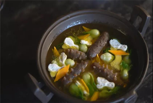 為了匹配馬幫山遙路遠(yuǎn)從海外馱來的名貴的食材——海參,和順人往往會精心熬制一鍋無比鮮美的高湯。