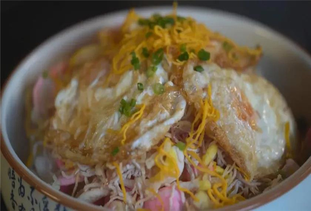 把糍粑角、乳扇在熱油中炸酥,雞蛋液攤成輕薄的蛋片,火腿絲煎熟,煎好荷包蛋,準(zhǔn)備些許蔥花,將這些食材依次碼好,澆上一勺加入甜白酒煮開的紅糖水,煎至酥脆的各類食材飽吸糖水,滋滋作響,入口綿化,咸甜相宜。據(jù)研究者考證,“頭腦”這一食品在四大古典名著之一的《水滸傳》中就出現(xiàn)過,這也證明了和順飲食和中原飲食的淵源。