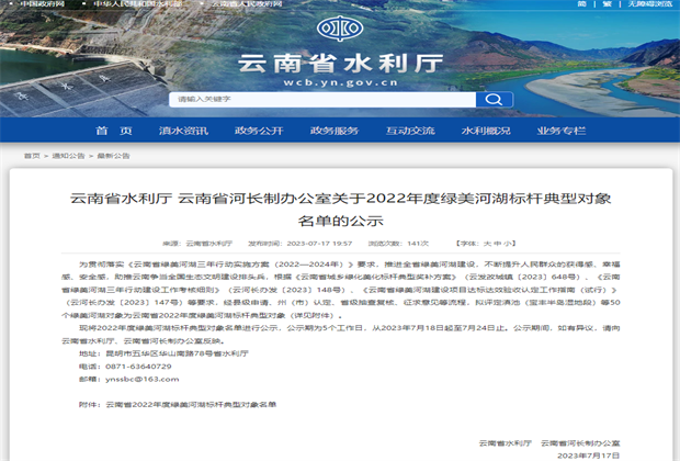 《2022年度綠美河湖標(biāo)桿典型對象名單的公示》