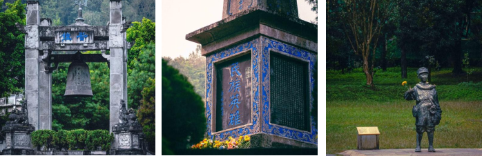 步入墓園,莊嚴(yán)肅穆之感油然而生。忠烈祠、紀(jì)念塔巍然屹立,無聲地訴說著那場收復(fù)騰沖的慘烈戰(zhàn)役。最令人動容的是山坡上整齊
