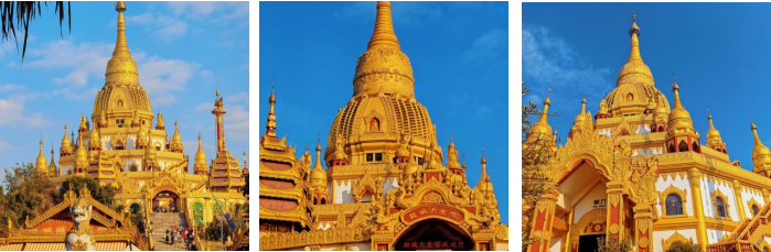 濃郁的南傳佛教氛圍。登臨塔周,您可以俯瞰整個芒市壩子的絕美風(fēng)光,將城市與田園盡收眼底,心境也隨之豁然開朗。尤其在日落
