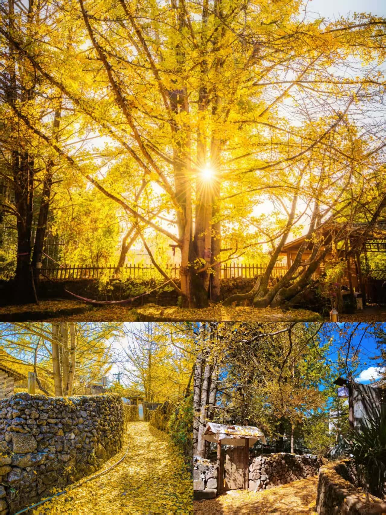 若時間充裕,可順路探訪「三疊水瀑布」(距村1.1公里),瀑布與銀杏同框別有韻味。帶足256G內(nèi)存卡,這里的每一幀都是壁紙級大片!