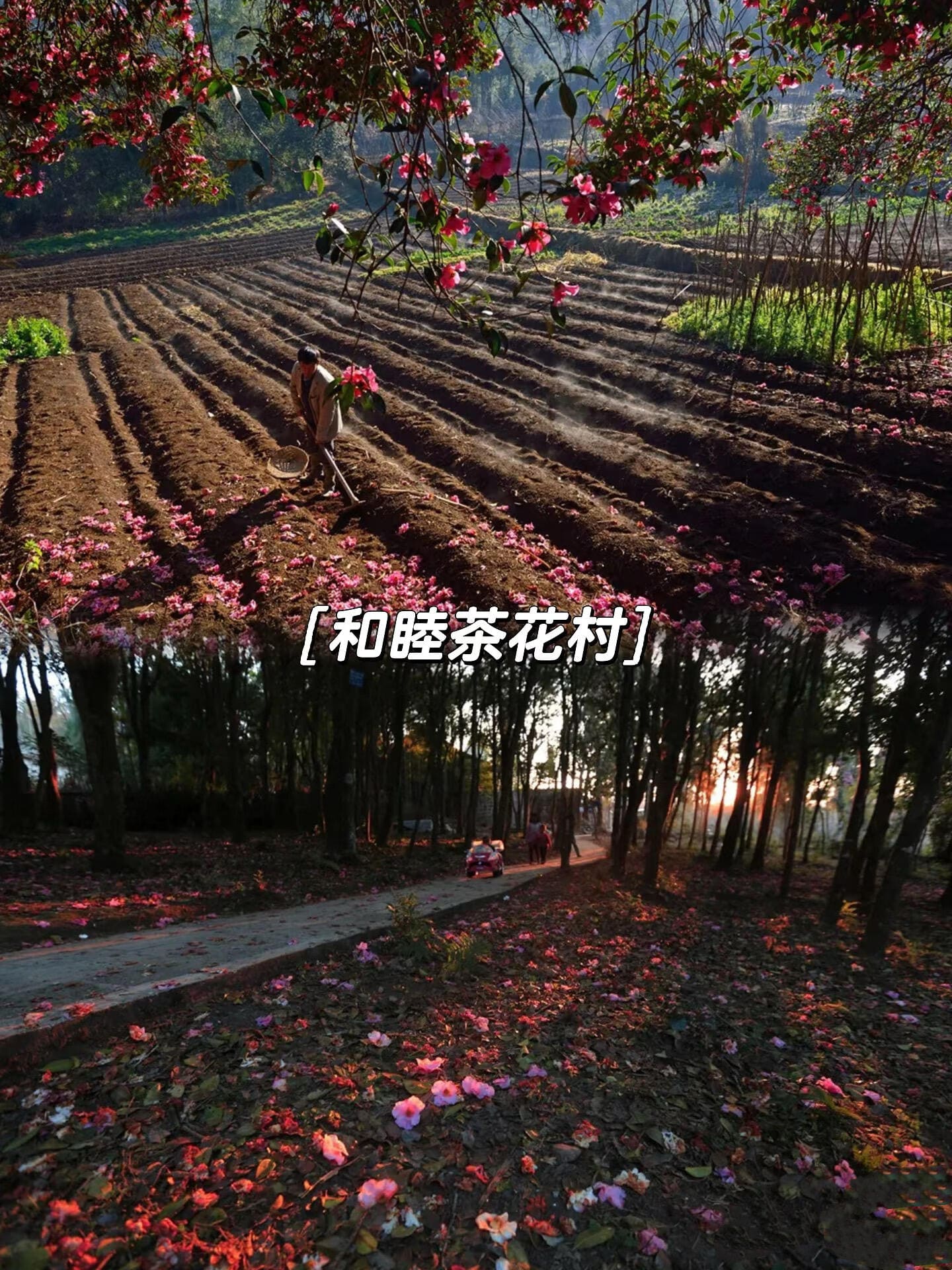 約7000株樹齡超百年的紅花油茶樹,每年12月至次年3月花期時,紅花遍野,民居建筑風格獨特,田園風光優(yōu)美。