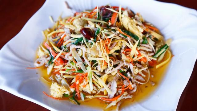 33、茄肉在和順已經(jīng)有一百多年的歷史。它是當年“走夷方”的時候,從緬甸傳入騰沖的佳肴。其做法相對傳統(tǒng),但因加入了緬甸香料“茄”,而呈現(xiàn)出了令人驚艷的異域風味。當傳統(tǒng)的烹飪遇見外來的香料,這道美食便有了獨具地域特色的精彩。
