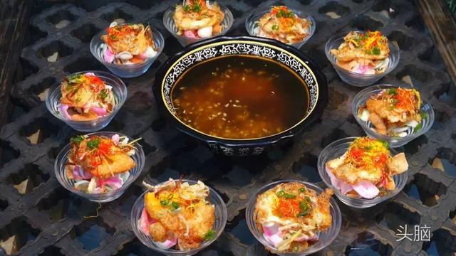 32、“頭腦”幾乎是每一位來騰沖旅游的人必吃的美食,雖然它的名字取自“有頭有腦”,直白又簡單,但其做法卻復(fù)雜而精致。當松軟的食材澆上煮好的米酒糖水,這道美味就多了一份甜品的細膩。不同的味道滲透融合、香氣彌漫!這一道傳承了上百年的“頭腦”更像是一份鄉(xiāng)愁的寄托,寫滿了當?shù)厝藢亦l(xiāng)美好生活的向往。