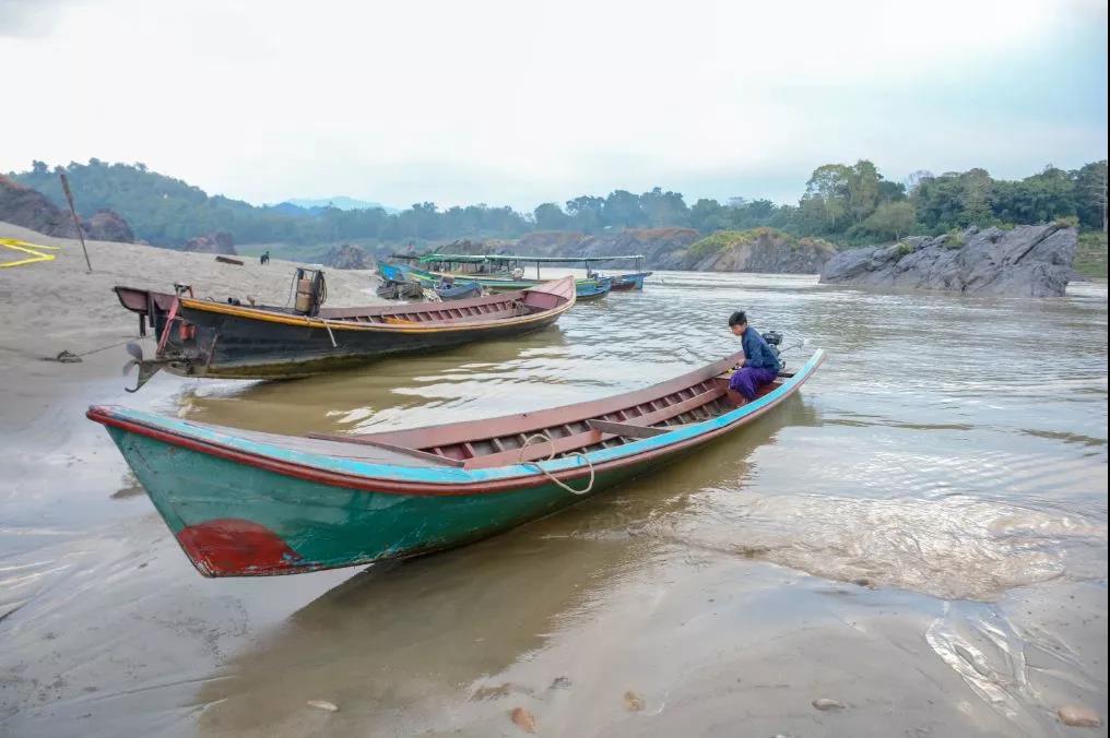 三江口(大敏宋),是伊洛瓦底江的神來之筆,也是克欽邦的經(jīng)典景點。東邊恩梅開江西邊邁立開江,兩江間礁峭石奇,江水奔涌,在巨大的魚嘴石處交匯合二為一,浩蕩南行。