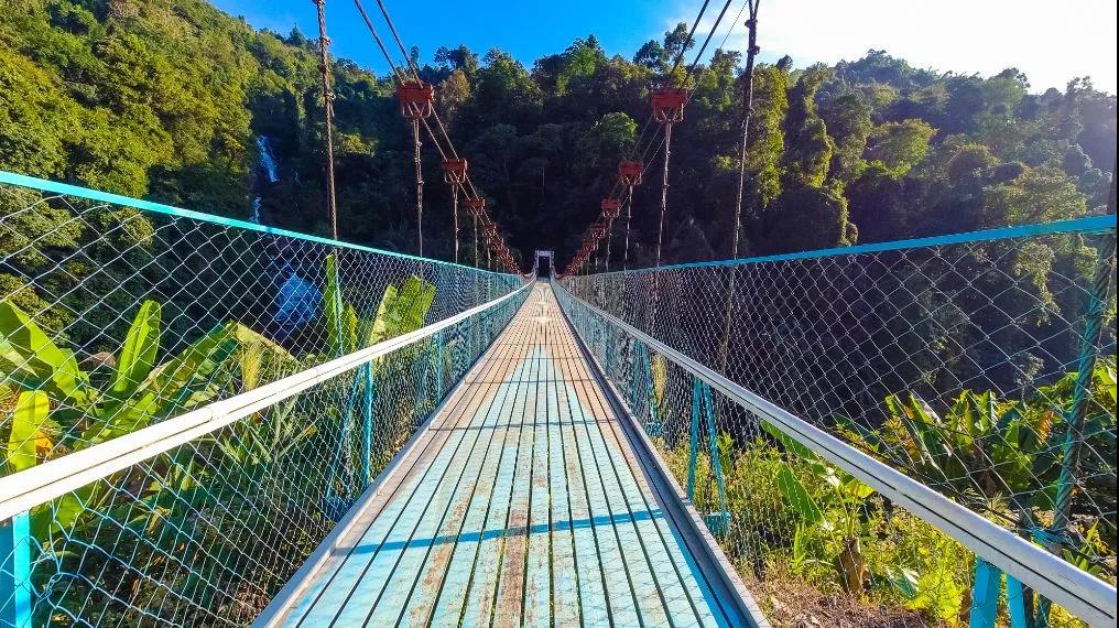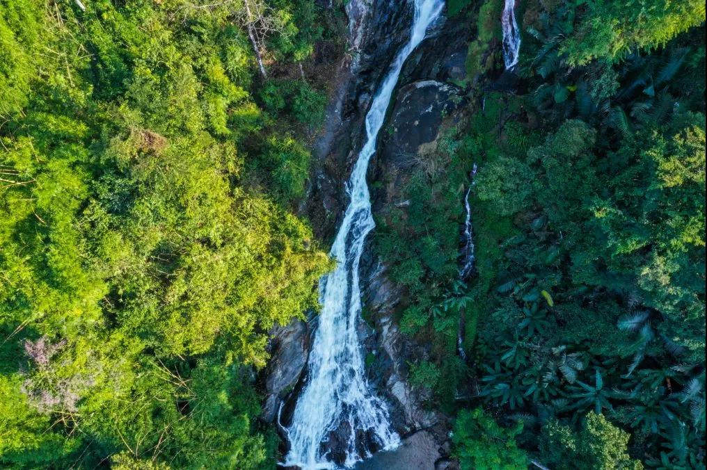三疊水瀑布(Sadung Waterfall),原始森林里溢出的清流,以溝內(nèi)層層階梯為舞臺,經(jīng)過一道道坡崖溝坎,清澈的河流飛馳而下,形成了別有景致的小瀑布。