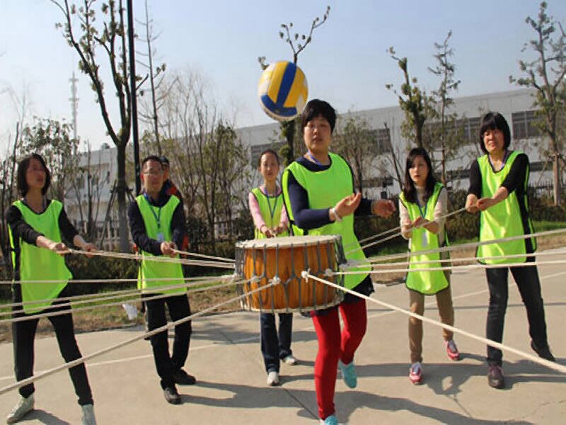 活動簡介:擊鼓顛球是拓展訓(xùn)練中的團(tuán)隊(duì)合作項(xiàng)目。在小組間的對抗中,靠一兩個(gè)人的努力是遠(yuǎn)遠(yuǎn)不夠的,只有借助全隊(duì)成員的共同努力才能取得不錯的成績。 項(xiàng)目挑戰(zhàn)失敗后,要集體受罰,這種形式也能促進(jìn)在困難中的人們相互幫助,團(tuán)結(jié)一心,有效地培養(yǎng)集體主義精神。