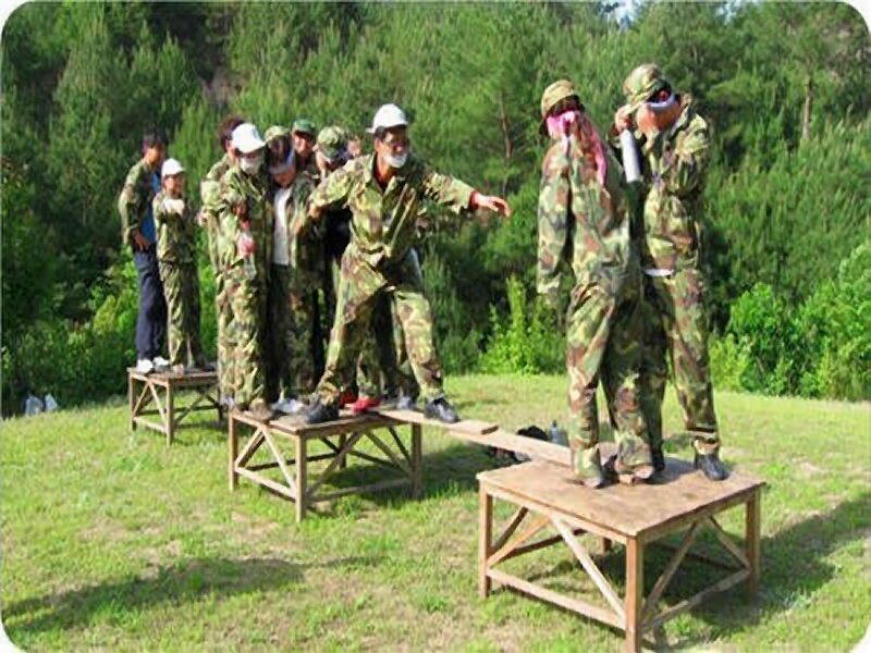 3、將每隊(duì)學(xué)員分成三組,分別安置在盲人島(喻基層員工)、啞人島(中層管理者)、健全人島(高層決策者)。此項(xiàng)目強(qiáng)調(diào)主動溝通、信息共享的重要性,尤其是說明了主管者運(yùn)用資源和決策的重要性。