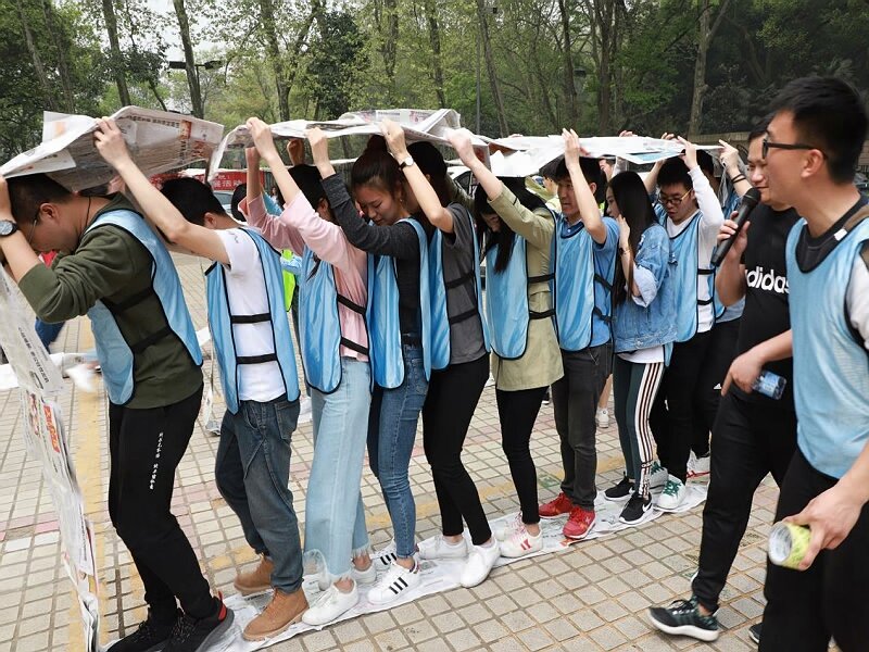 5、注意:首先拿到報紙等物品后,每隊所有人員最好能分配工作,然后在最短的時間完成風火輪的制作,制作的風火輪最好能大一點,不然容易被踩斷; 駕駛風火輪時,最好提前選擇一個隊長,且隊長在最前邊,掌握行走節(jié)奏并發(fā)號命令。