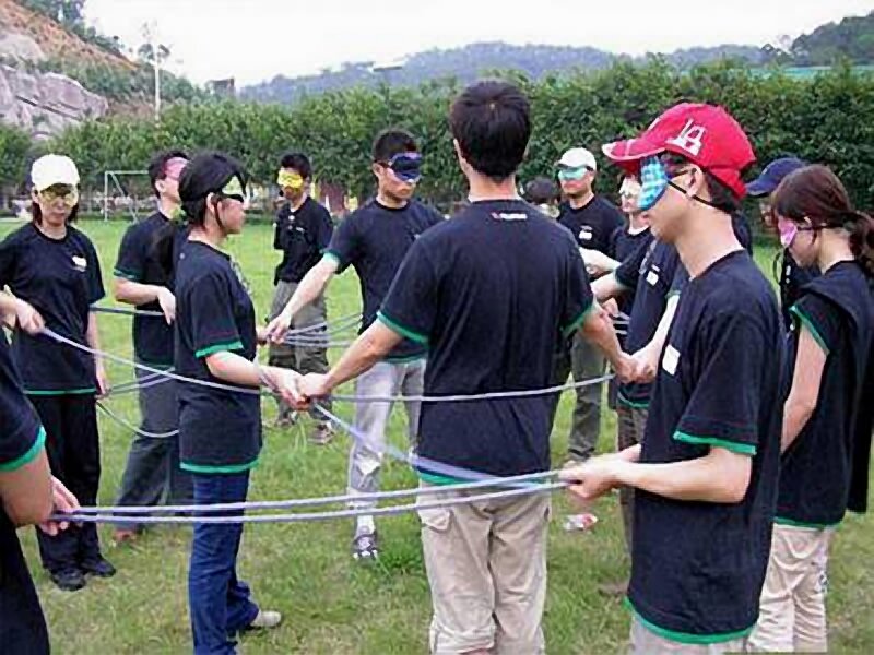 盲人方陣,也叫黑夜協(xié)作,這是一個(gè)以團(tuán)隊(duì)挑戰(zhàn)為主的項(xiàng)目。用教練給的繩索圍成一個(gè)面積最大的正方形,看似簡(jiǎn)單吧。但是當(dāng)所有的人被蒙上眼睛的時(shí)候,隊(duì)員會(huì)發(fā)現(xiàn),原來(lái)難度一點(diǎn)也不小,并且大家將體會(huì)到團(tuán)隊(duì)的指揮、溝通、協(xié)調(diào)能力還真不能被忽視。一群盲人在黑暗中摸索,他們必須集體完成一個(gè)十分精細(xì)的任務(wù)。在茫然無(wú)助的探索中,管理中的現(xiàn)象在此都表露無(wú)遺,很值得學(xué)員去體味和思考。