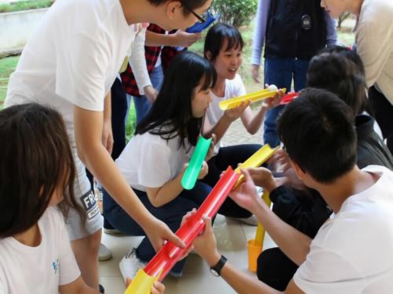 9、如果是10到30人,所有人圍成一個(gè)圓圈,每人手拿球槽,然后讓球在球槽中滾動(dòng)傳遞,在球不掉落的情況下傳遞5圈則為成功。