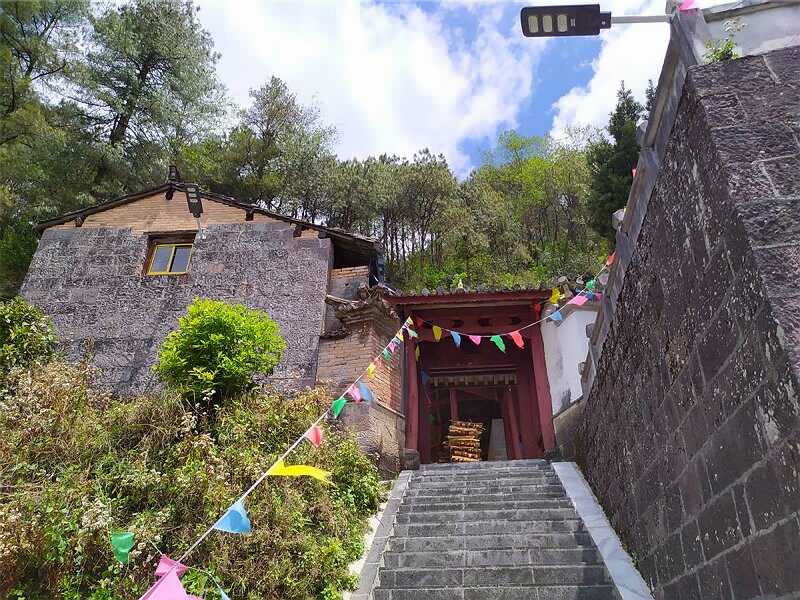 其登山之路碗蜒而上,百步九折,石階以"Z"字形向上迂回前行,登山較為艱辛。然而山中花木奪秀,鳥(niǎo)雀紛鳴,十分居怡人。站在天臺(tái)眺望,騰沖城仿佛一軸平鋪直述的畫(huà)卷。