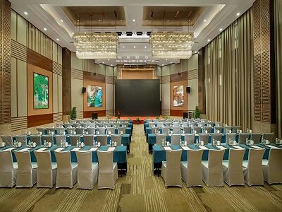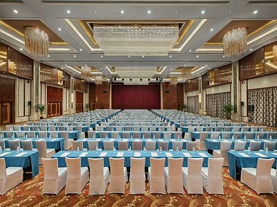 酒店擁有高7米,面積1200平方米的無柱式千人宴會廳及不同規(guī)格會議室19間,均配有高端專業(yè)影音設(shè)備和無線同聲傳譯系統(tǒng)。酒店為會議提供以下服務(wù):高清LED顯示屏;活動舞臺、白板、各式麥克風(fēng);多媒體投影儀、屏幕;演講臺、實物投影儀、攝像機、電視機; 寬帶上網(wǎng)、激光筆、同聲傳譯; 筆記本電腦、電視電話會議;舞臺燈光、專業(yè)音響等,能滿足各種會議需求。