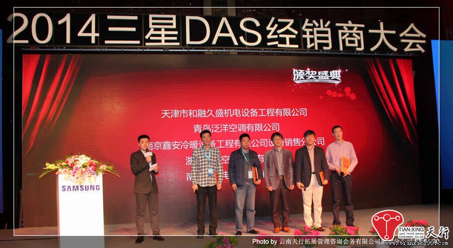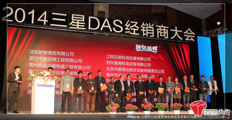 2014年2月17日,三星中央空調(diào)在云南騰沖舉行2014三星DAS經(jīng)銷商大會,來自全國各地的100多位經(jīng)銷商以及三星中央空調(diào)韓國本社、中國總部的相關領導出席會議。會議透露,在已經(jīng)過去的2013年,三星中央空調(diào)在中國市場實現(xiàn)銷售額40%的增長,樹立了諸如上海融真商務廣場、安徽置地廣栢銳中心、天津天驥·智谷、濟南綠地普利中心等樣板工程,尤為出色的是三星在家裝流通領域的增長和進步。