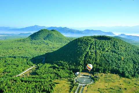 進入景區(qū)大門,右手邊有一個關(guān)于火山的小博物館,可以了解火山的形成和結(jié)構(gòu)。從大門口通向大空山的路很寬,左右兩條,都是用火山石鋪的。在通向大空山的道路向側(cè)邊延伸出一條岔道,那是通往小空山的步道。根據(jù)自己的體力選擇其中一個或是全都攀爬。兩座山都有小路到達“鍋底”(火山口),其中小空山的景致要更好一些,如果體力和時間不允許的情況下,可以選擇爬小空山,兩座山都有階梯直到山頂,小空山火山口四周建了一條木棧道,可以繞火山口走一圈,還可以沿著游人踩出來的小路下到山頂。若是嫌爬山還不夠登高望遠,早上這邊可以選擇乘坐熱氣球,從另一種角度俯瞰密布原野的火山口。