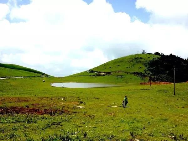 山頂上的草原如一塊巨大的毯子,一坡又一坡遍地生長的野花,中央有一個明凈的湖泊,倒影著日月星辰,這兒被人們稱之為“天上草原”。