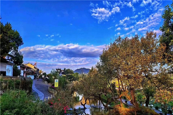 ? ? ?全鎮(zhèn)住宅從東到西、環(huán)山而建,漸次遞升,綿延兩三公里。一座座古剎、祠堂、明清古建筑疏疏落落圍繞著這塊小壩子。鄉(xiāng)前一馬平川,清溪繞村,垂柳拂岸,讓人留連忘返,民國代總理李根源有詩贊和順:"絕勝小蘇杭"。民宅的后面是黛色的山脈,黃昏時(shí)已分辨不清山崖的脈絡(luò),濕地邊緣不時(shí)冒出縷縷白煙,仿佛是小村莊上空的炊煙一般。