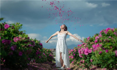 伴著迷人的花香,走進玫瑰花海,耳畔是蜜蜂的嗡嗡聲,粉嫩的玫瑰花瓣散落在地上,泥土也芳香了起來。