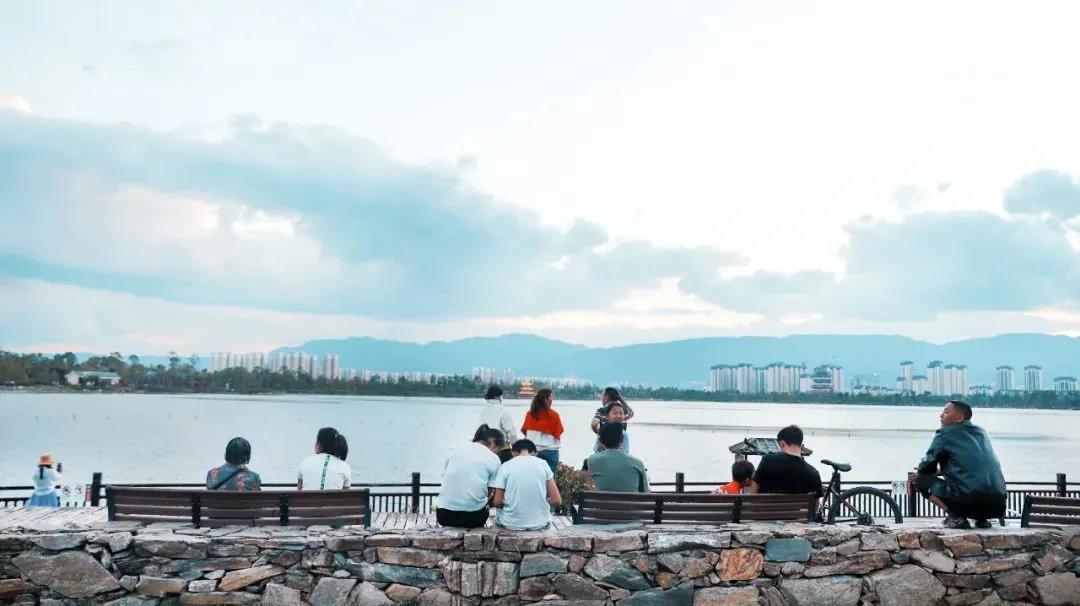 是西映余暉,青華海層疊的人群,在長(zhǎng)椅上發(fā)呆納涼,在湖邊看云卷云舒?