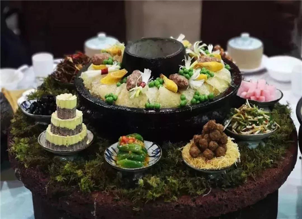 三滴水是騰沖地區(qū)古老而檔次高的筵席。一滴水就是一道好菜,第一滴水是點心和開胃類食物;第二滴水是當地特色菜——八大碗;第三滴水是餐后甜點和水果。如此隆重大餐卻被簡稱“三滴水”,你說怪不怪?