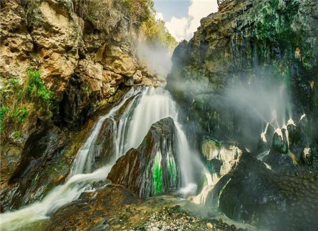 蛤蟆嘴位于澡堂河瀑布旁邊,該泉群因形似“張口蛤蟆”而得名,是全國(guó)唯一的脈動(dòng)式沸噴泉。由于高溫泉水中混合有氣體,呈現(xiàn)間歇性噴發(fā),故而形成脈動(dòng)式噴射特點(diǎn),長(zhǎng)年累月泉口沉淀了許多硅華呈白色,周圍又生有許多高溫藻類呈綠色,遠(yuǎn)觀酷似一只大蛤蟆,此泉為間歇泉好似一群蛤蟆有規(guī)律地吐水,又名"蛤蟆吐水"。